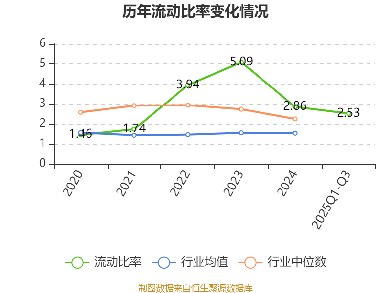 2025年前三季度,公司流动比率为2.53,速动比率为1.61。