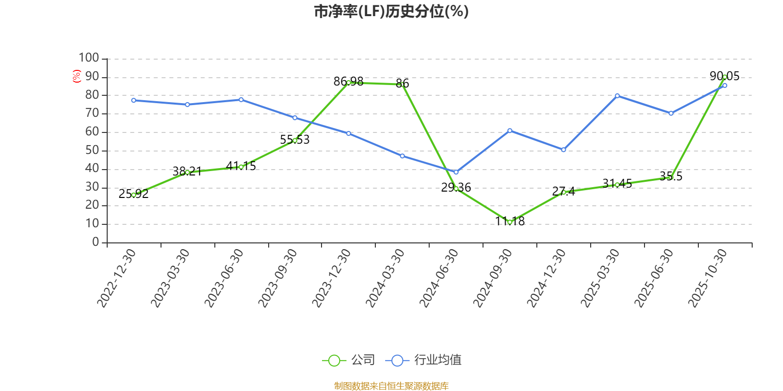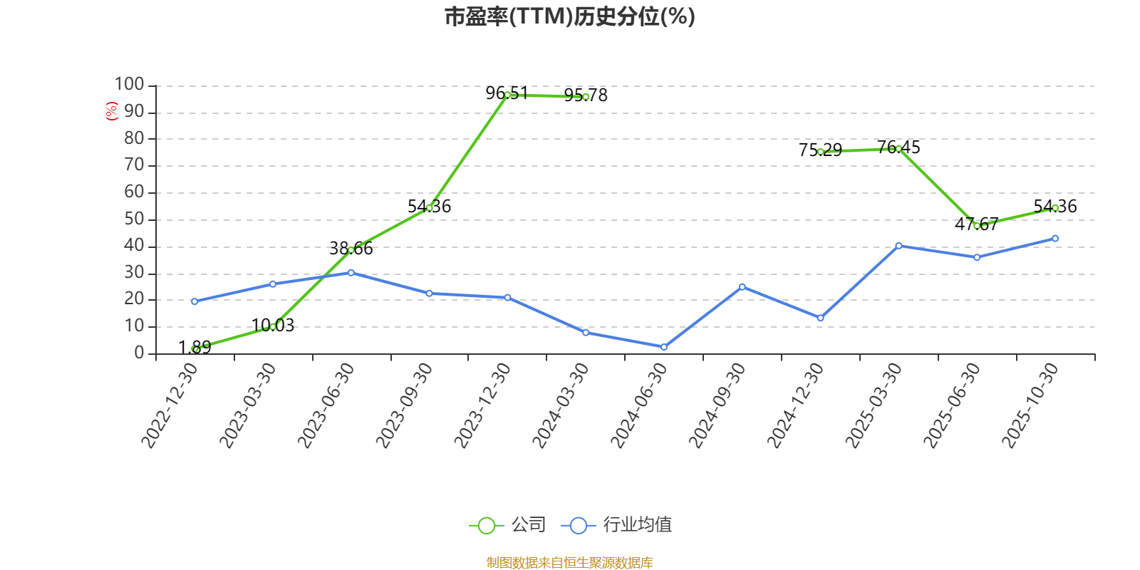 市盈率、市净率为负时,不显示当期分位数,会导致折线图中断。