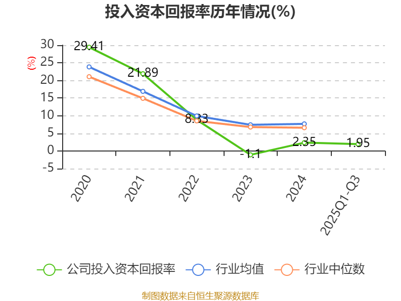 盈利能力方面, 2025年前三季度公司加权平均净资产收益率为2.24%,同比上升0.14个百分点。公司2025年前三季度投入资本回报率为1.95%,较上年同期上升0.09个百分点。