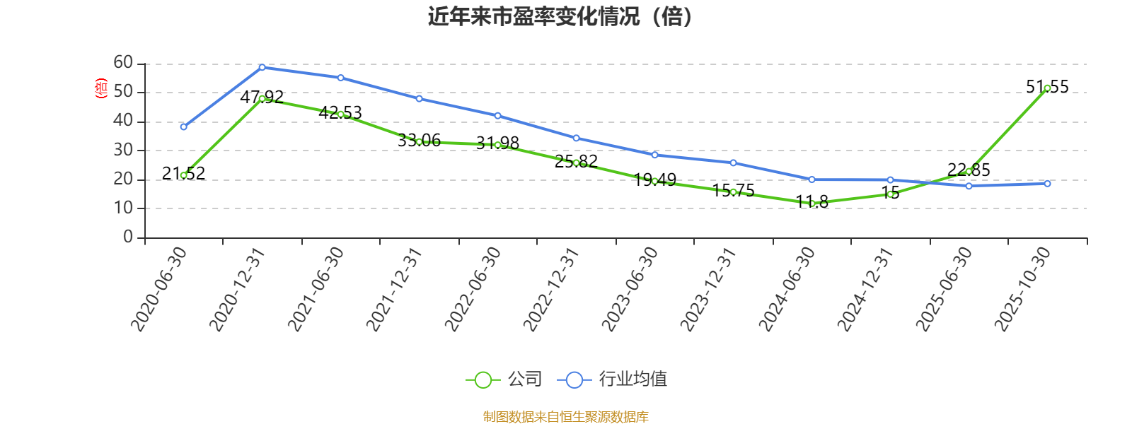 以10月30日收盘价计算,洋河股份目前市盈率(TTM)约为51.55倍,市净率(LF)约2.2倍,市销率(TTM)约5.49倍。