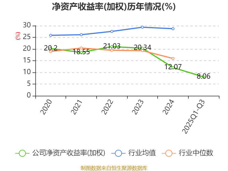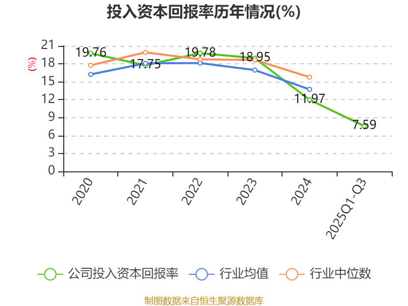 盈利能力方面, 2025年前三季度公司加权平均净资产收益率为8.06%,同比下降7.2个百分点。公司2025年前三季度投入资本回报率为7.59%,较上年同期下降7.88个百分点。