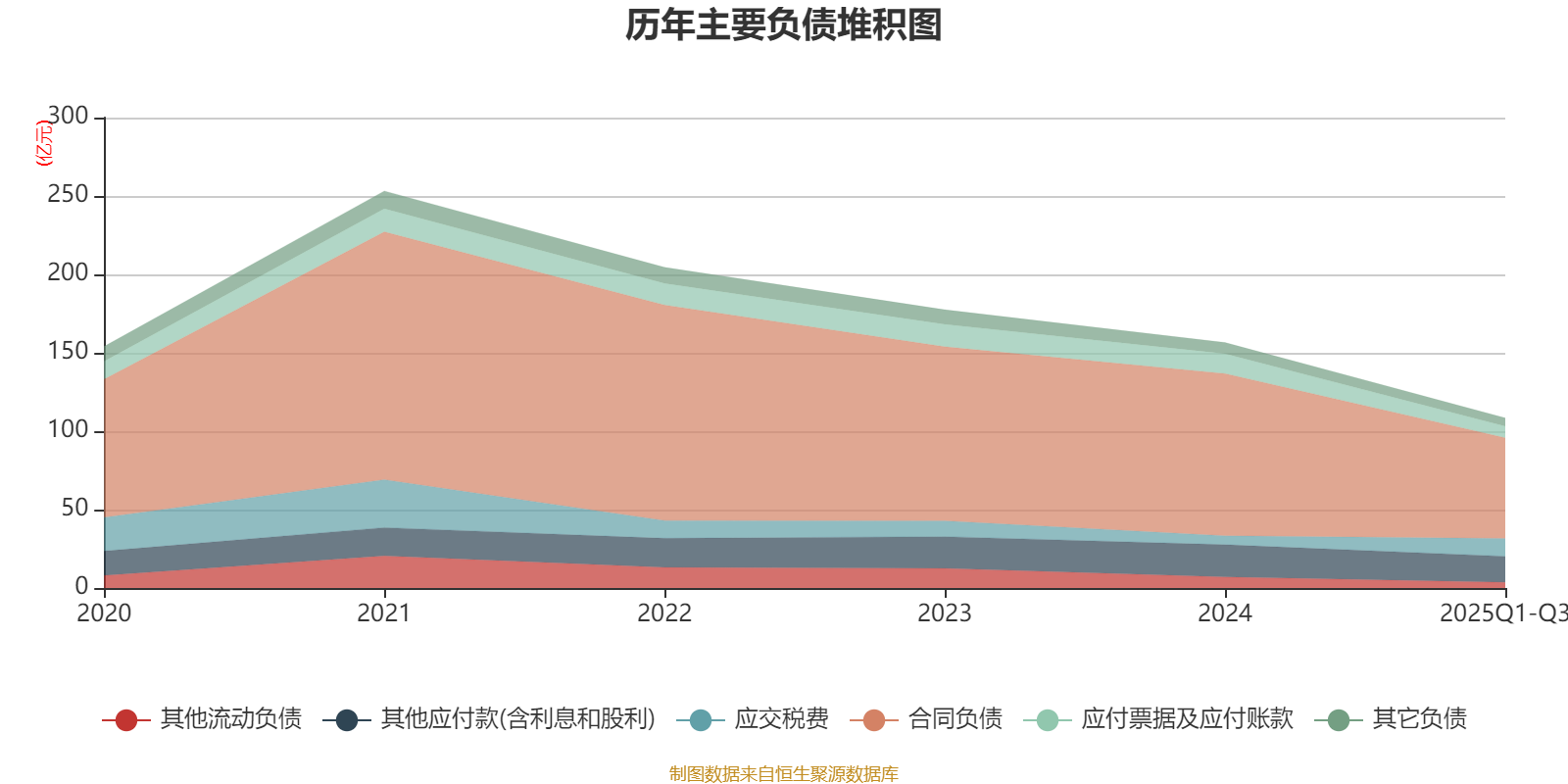 负债重大变化方面,截至2025年三季度末,公司合同负债较上年末减少37.9%,占公司总资产比重下降4.56个百分点;应交税费较上年末增加101.5%,占公司总资产比重上升1.07个百分点;应付票据及应付账款较上年末减少42.52%,占公司总资产比重下降0.66个百分点;其他流动负债较上年末减少48.01%,占公司总资产比重下降0.43个百分点。