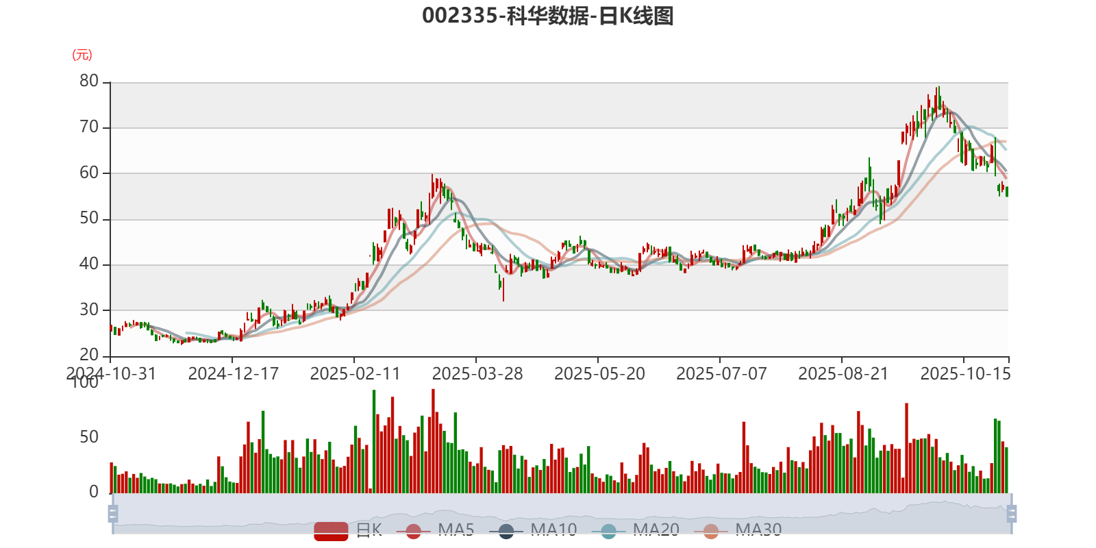 中证智能财讯科华数据(002335)10月31日披露2025年第三季度报告。前三季度公司实现营业总收入57.06亿元,同比增长5.79%;归母净利润3.44亿元,同比增长44.71%;扣非净利润3亿元,同比增长36.85%;经营活动产生的现金流量净额为1.74亿元,同比下降9.83%;报告期内,科华数据基本每股收益为0.73元,加权平均净资产收益率为7.11%。