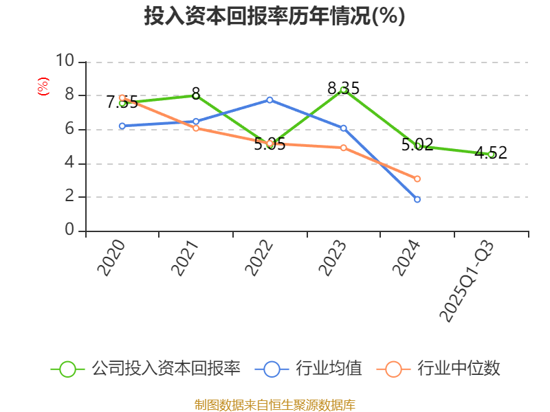 盈利能力方面, 2025年前三季度公司加权平均净资产收益率为7.11%,同比上升1.82个百分点。公司2025年前三季度投入资本回报率为4.52%,较上年同期上升0.63个百分点。