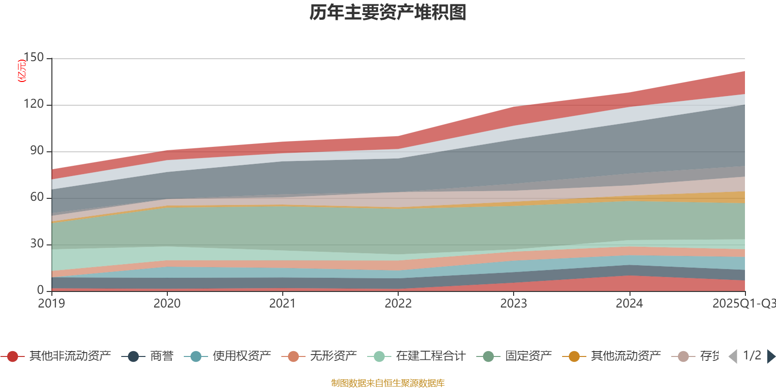 资产重大变化方面,截至2025年三季度末,公司固定资产较上年末减少7.35%,占公司总资产比重下降3.21个百分点;货币资金较上年末减少32.02%,占公司总资产比重下降3.01个百分点;其他非流动资产较上年末减少31.96%,占公司总资产比重下降3.01个百分点;其他流动资产较上年末增加123.62%,占公司总资产比重上升2.75个百分点。