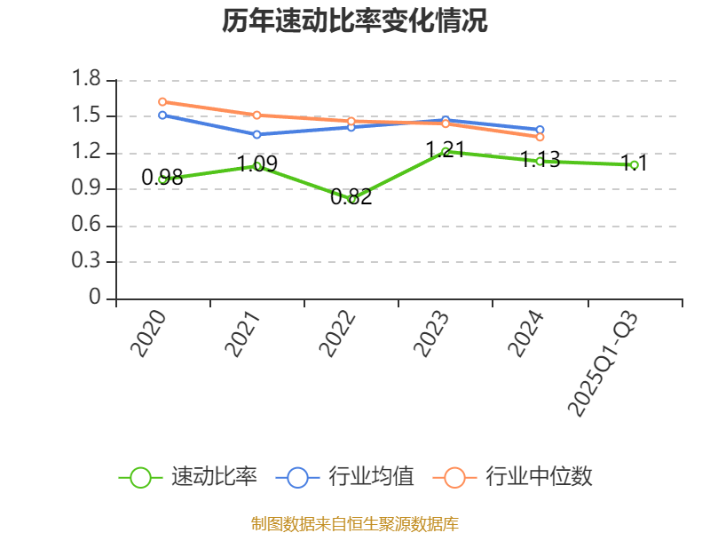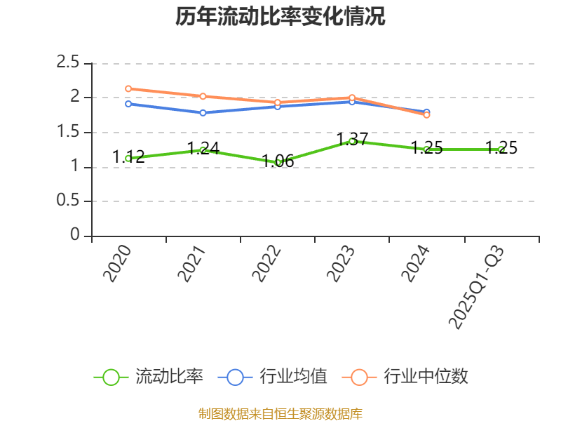 2025年前三季度,公司流动比率为1.25,速动比率为1.1。