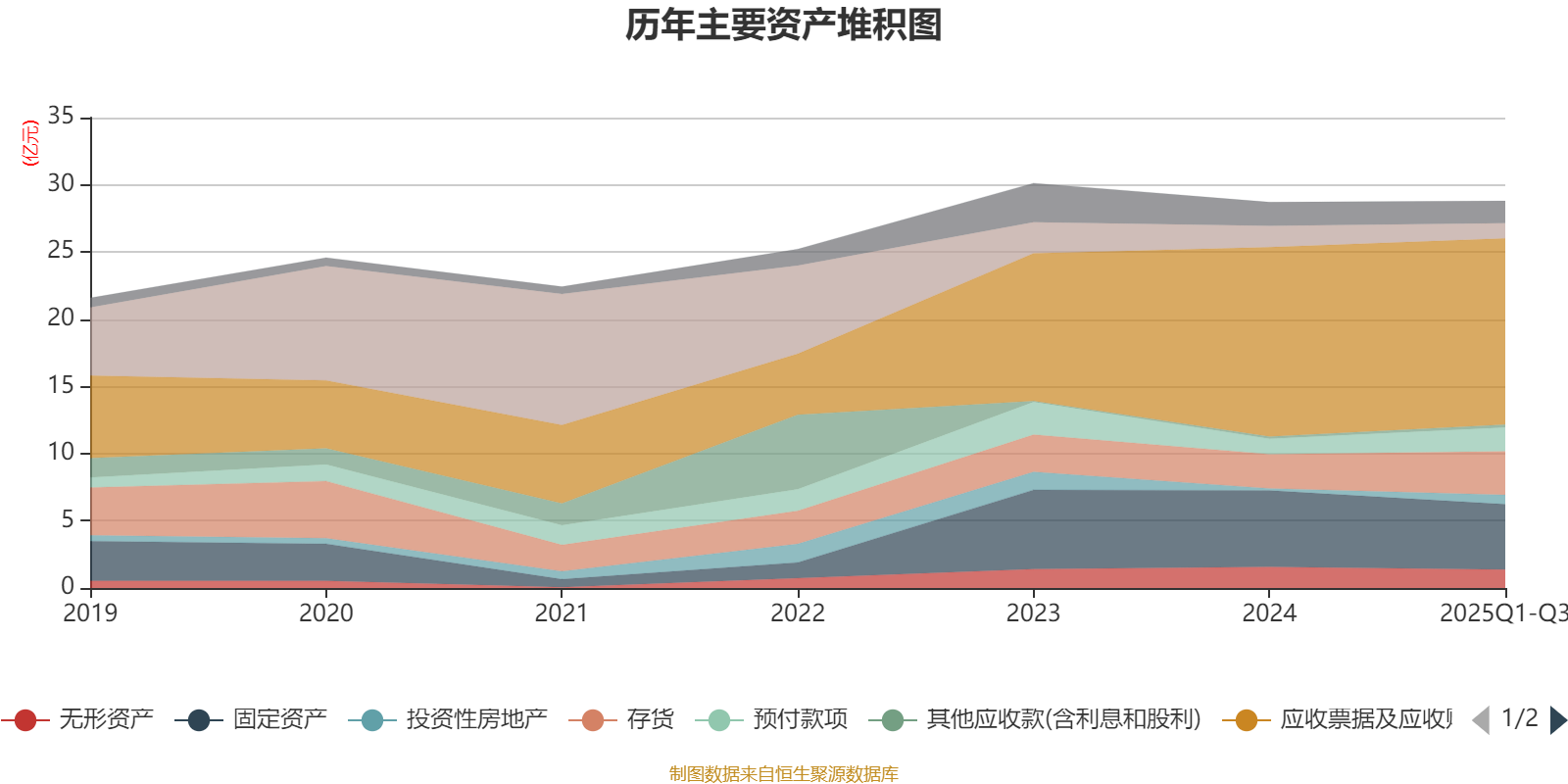 资产重大变化方面,截至2025年三季度末,公司固定资产较上年末减少14.47%,占公司总资产比重下降2.92个百分点;存货较上年末增加26.83%,占公司总资产比重上升2.35个百分点;预付款项较上年末增加56.73%,占公司总资产比重上升2.23个百分点;投资性房地产较上年末增加350.23%,占公司总资产比重上升1.89个百分点。