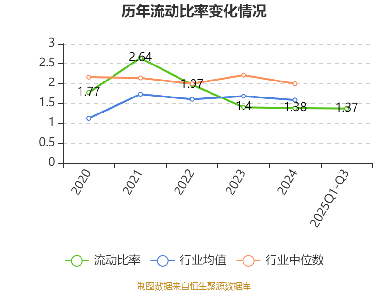 2025年前三季度,公司流动比率为1.37,速动比率为1.16。
