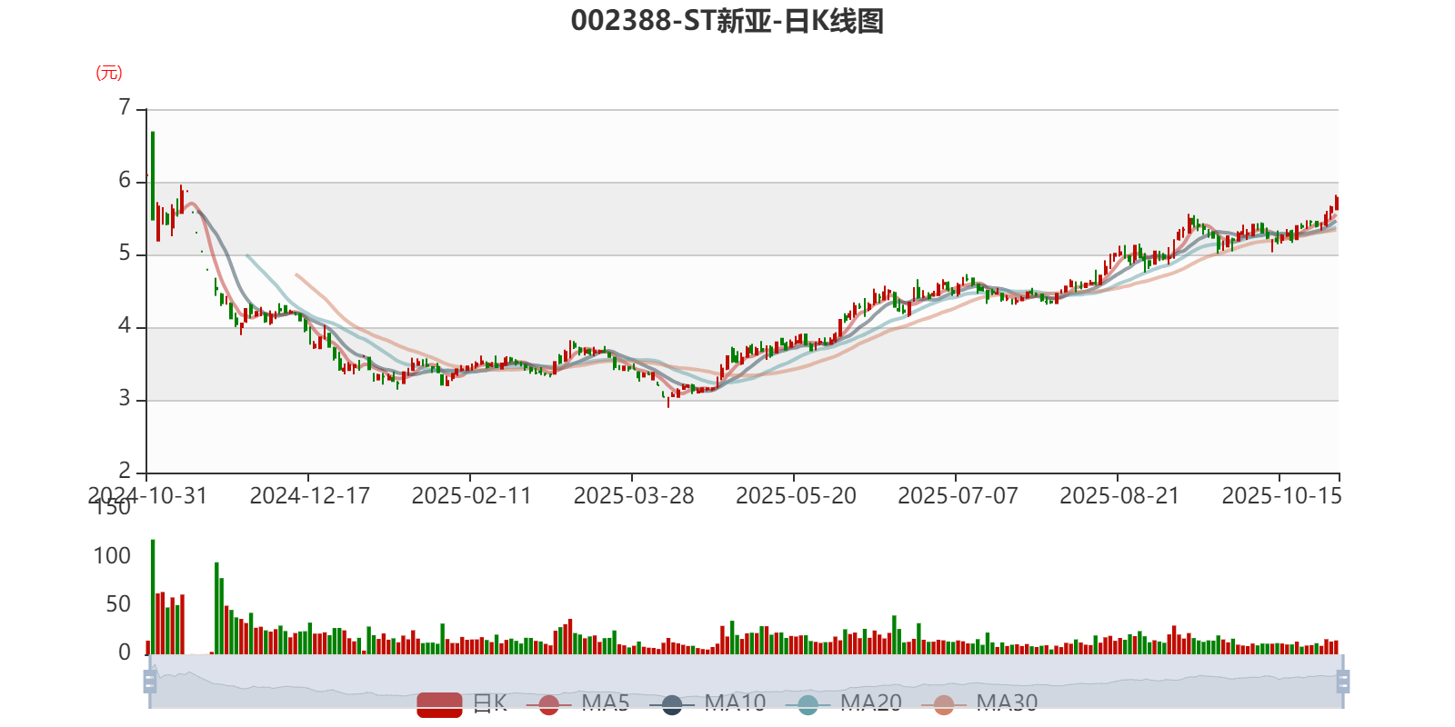 中证智能财讯 ST新亚(002388)10月31日披露2025年第三季度报告。前三季度公司实现营业总收入13.77亿元,同比下降12.66%;归母净利润169.04万元,同比增长170.58%;扣非净利润亏损1026.91万元,上年同期盈利666.88万元;经营活动产生的现金流量净额为-1.19亿元,上年同期为-1.29亿元;报告期内,ST新亚基本每股收益为0.0033元,加权平均净资产收益率为0.17%。