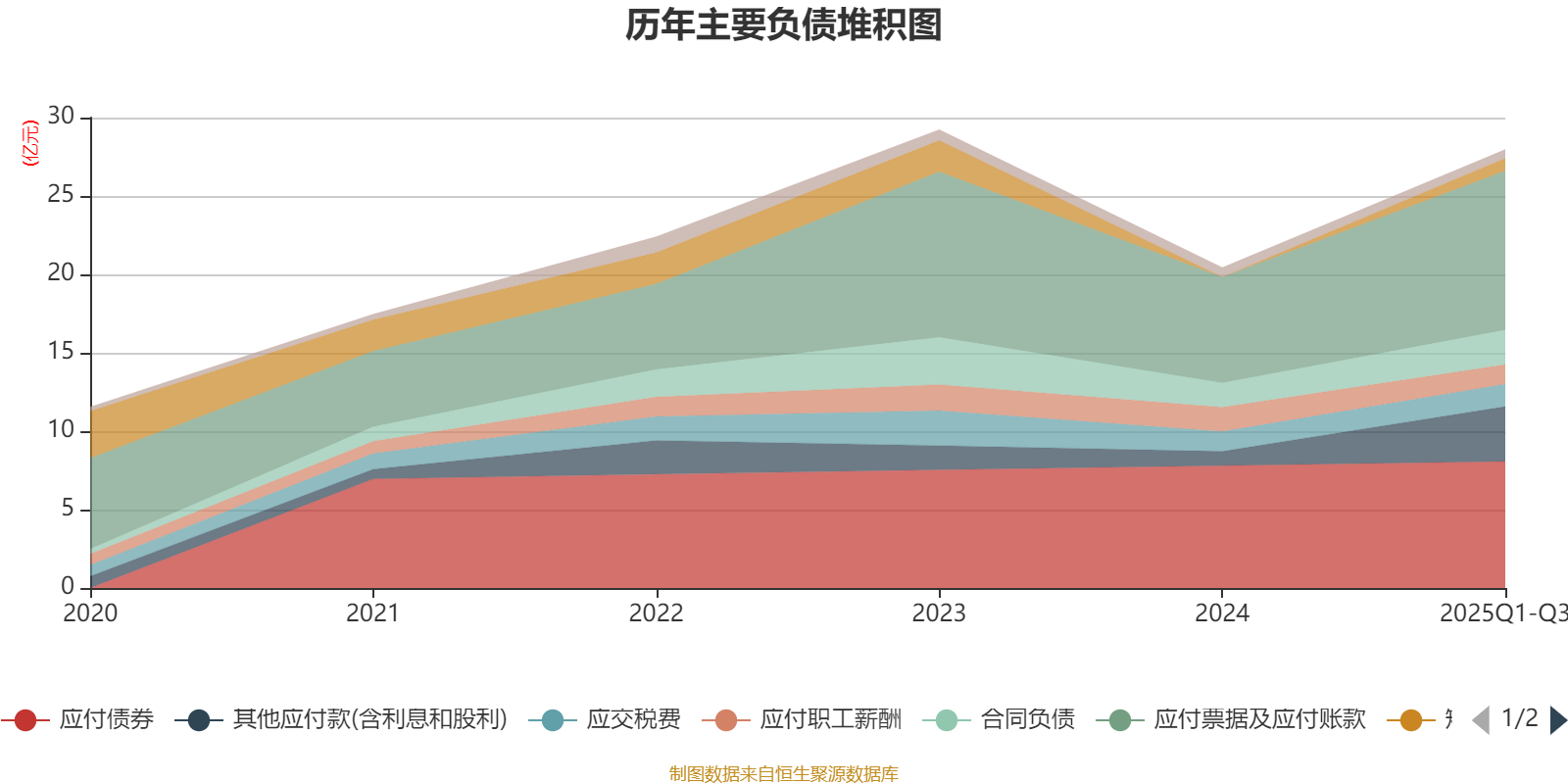负债重大变化方面,截至2025年三季度末,公司其他应付款(含利息和股利)较上年末增加282.21%,占公司总资产比重上升2.87个百分点;应付票据及应付账款较上年末增加50.04%,占公司总资产比重上升2.85个百分点;应付债券较上年末增加3.41%,占公司总资产比重下降0.95个百分点;短期借款占公司总资产的0.93%,上年末为0。