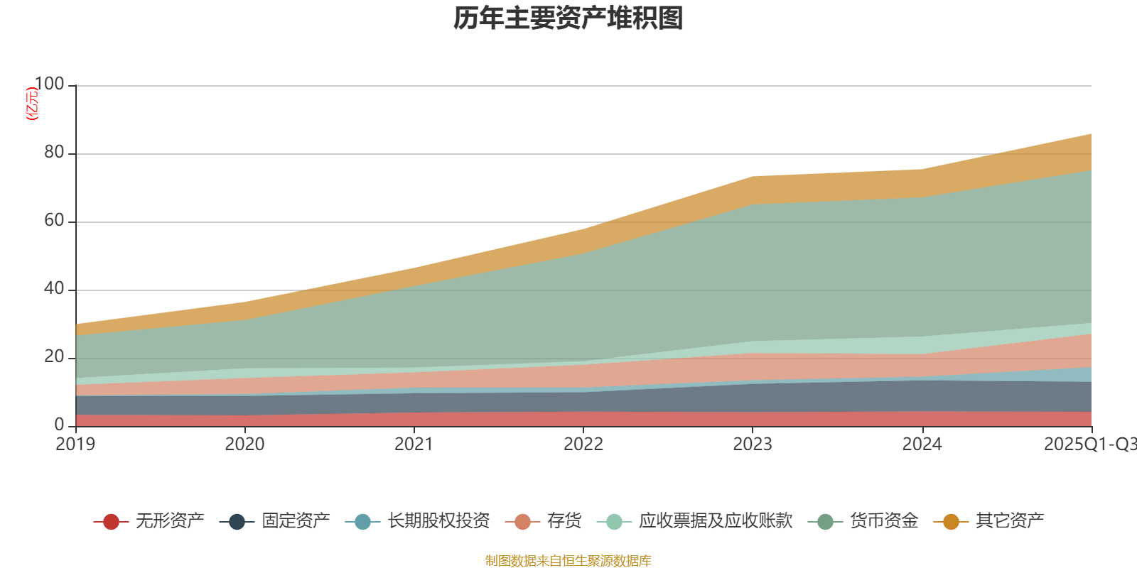 资产重大变化方面,截至2025年三季度末,公司长期股权投资较上年末增加288.37%,占公司总资产比重上升3.56个百分点;应收票据及应收账款较上年末减少38.51%,占公司总资产比重下降3.16个百分点;存货较上年末增加47.6%,占公司总资产比重上升2.6个百分点;货币资金较上年末增加9.81%,占公司总资产比重下降1.94个百分点。