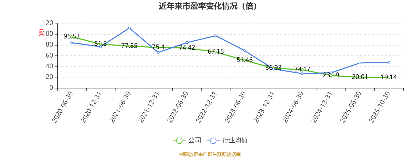 以10月30日收盘价计算,珀莱雅目前市盈率(TTM)约为19.14倍,市净率(LF)约5.33倍,市销率(TTM)约2.77倍。