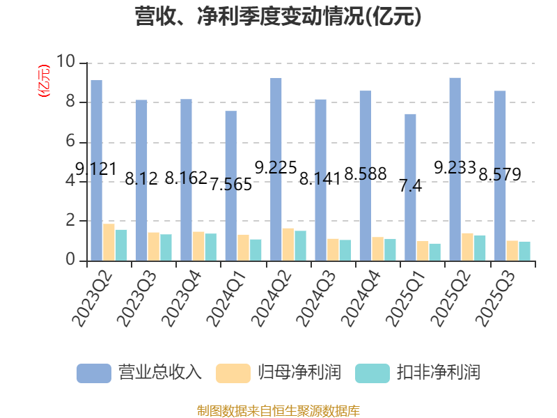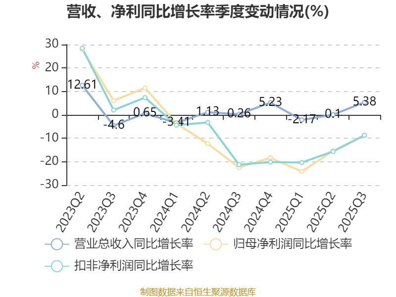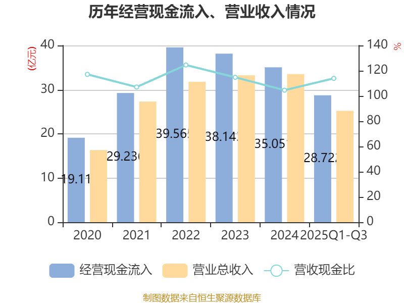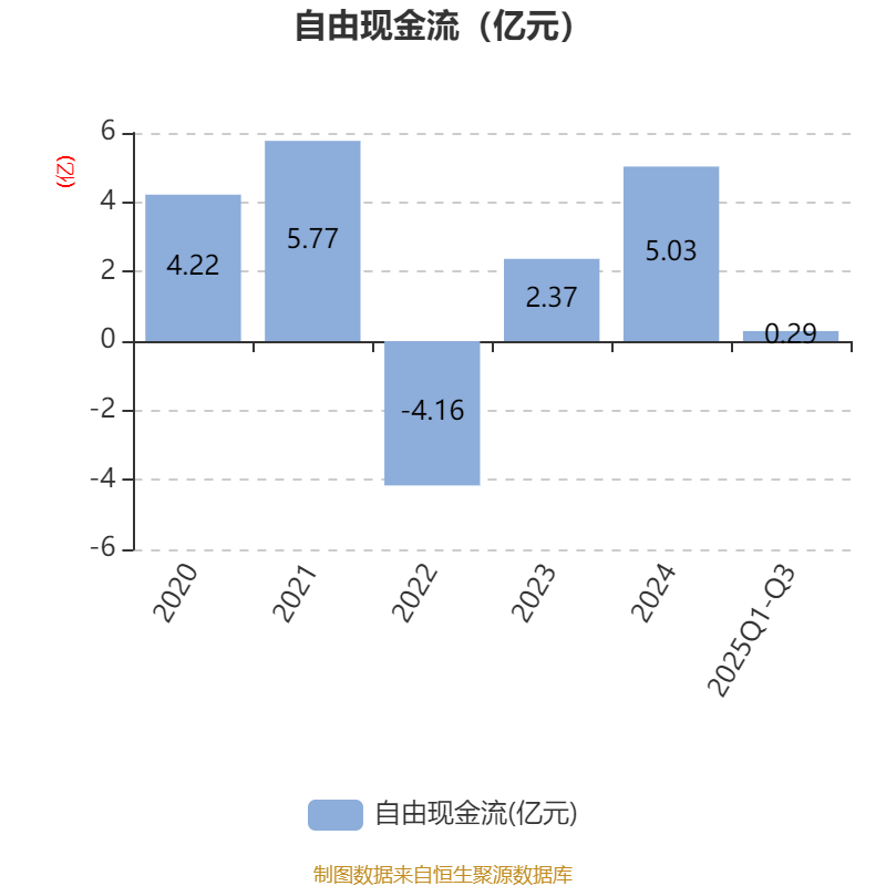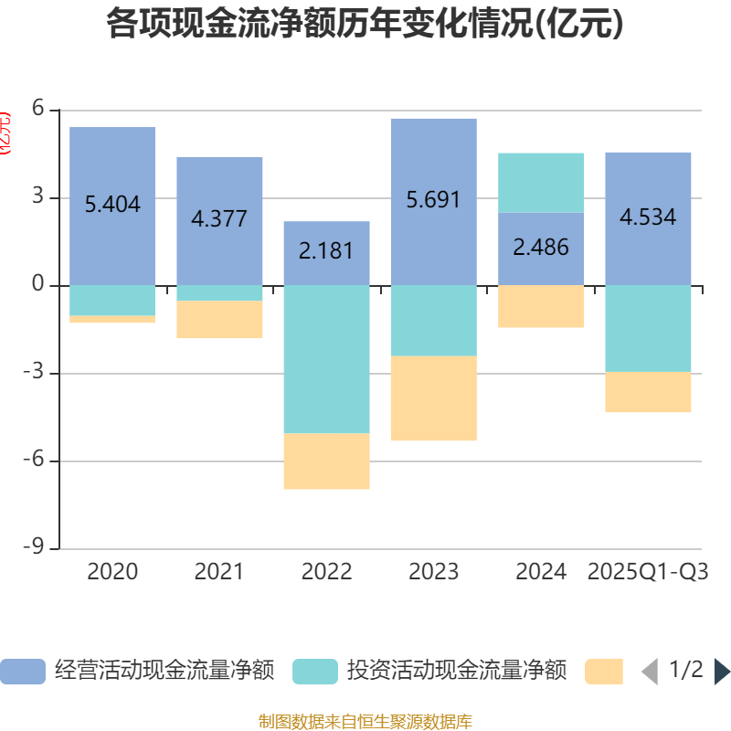 2025年前三季度,公司经营活动现金流净额为4.53亿元,同比增长91.85%;筹资活动现金流净额-1.38亿元,同比增加222.13万元;投资活动现金流净额-2.97亿元,上年同期为1.73亿元。