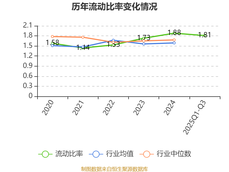 2025年前三季度,公司流动比率为1.81,速动比率为1.14。