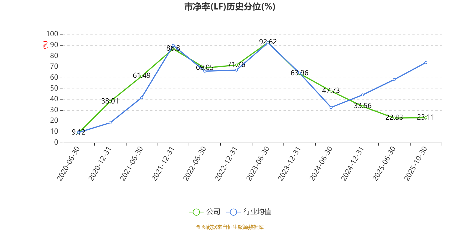 市盈率、市净率为负时,不显示当期分位数,会导致折线图中断。