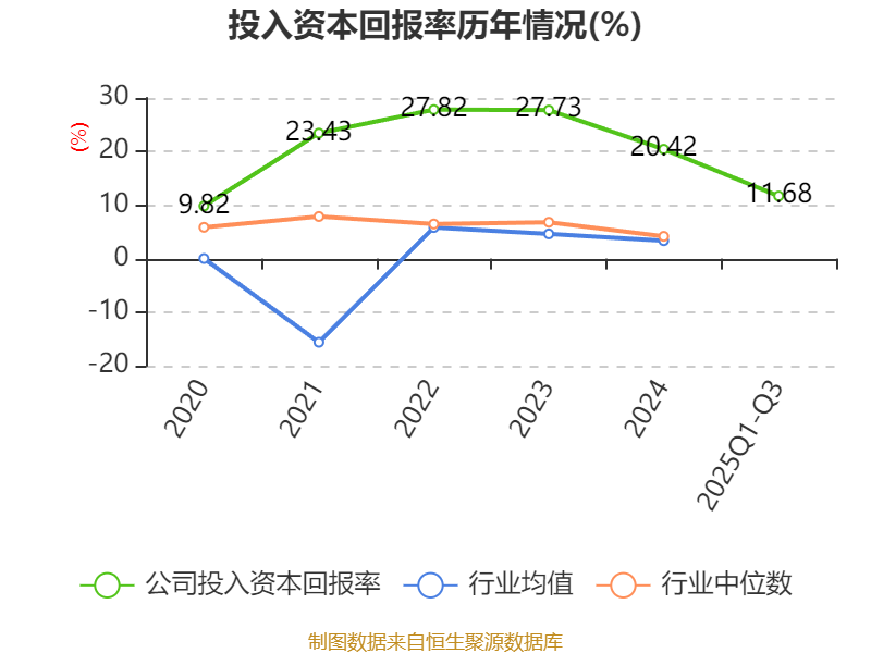 盈利能力方面, 2025年前三季度公司加权平均净资产收益率为12.19%,同比下降4.37个百分点。公司2025年前三季度投入资本回报率为11.68%,较上年同期下降4.49个百分点。