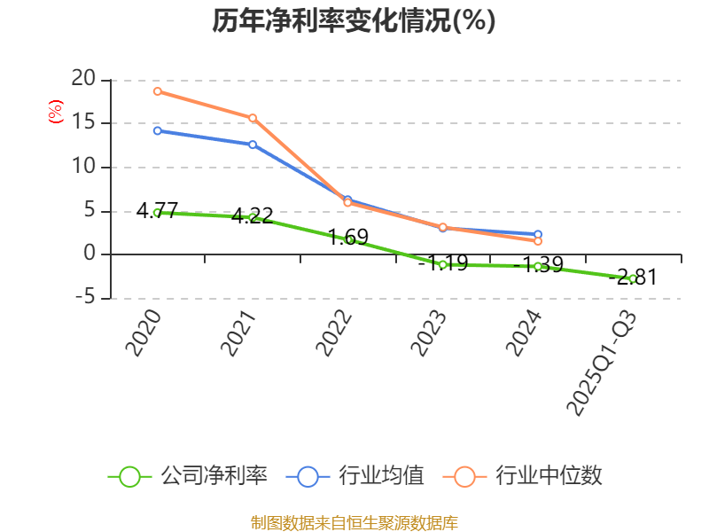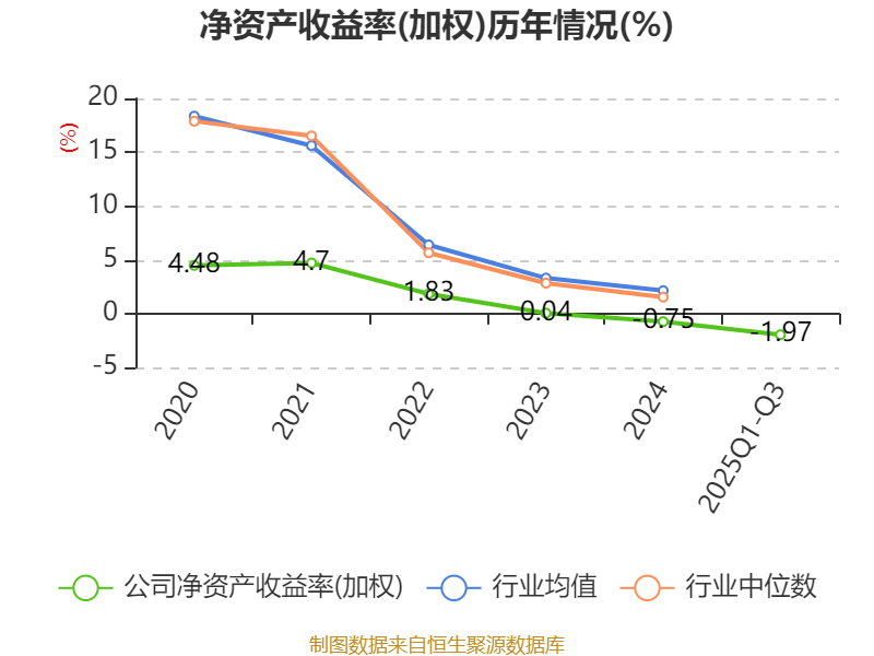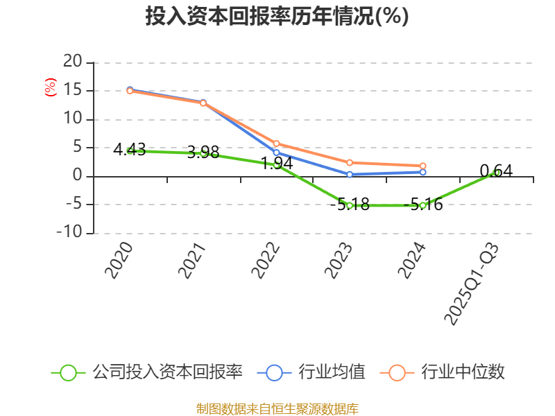 盈利能力方面, 2025年前三季度公司加权平均净资产收益率为-1.97%,同比下降1.36个百分点。公司2025年前三季度投入资本回报率为0.64%,较上年同期上升85.12个百分点。