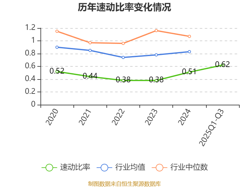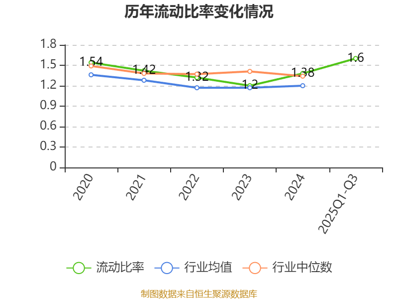 2025年前三季度,公司流动比率为1.6,速动比率为0.62。