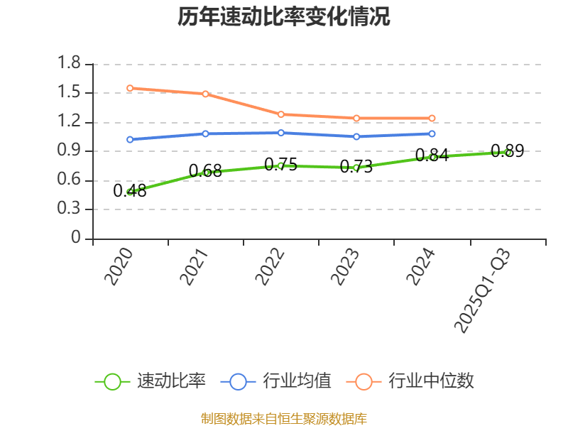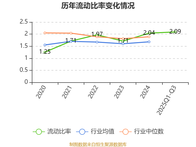2025年前三季度,公司流动比率为2.09,速动比率为0.89。
