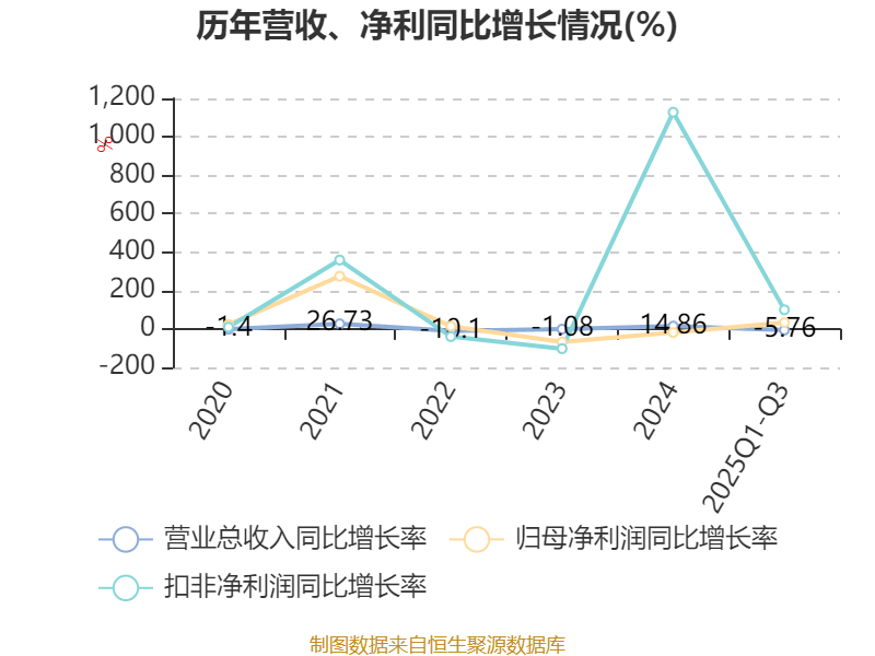资产重大变化方面,截至2025年三季度末,公司一年内到期的非流动资产较上年末增加4837.8%,占公司总资产比重上升3.71个百分点;其他非流动资产较上年末减少82.19%,占公司总资产比重下降3.42个百分点;存货较上年末减少1.25%,占公司总资产比重上升1.45个百分点;货币资金较上年末减少15.99%,占公司总资产比重下降1.44个百分点。