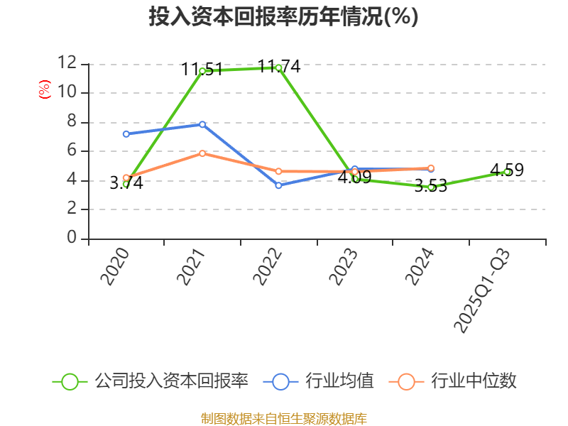 盈利能力方面, 2025年前三季度公司加权平均净资产收益率为5.79%,同比上升1.55个百分点。公司2025年前三季度投入资本回报率为4.59%,较上年同期上升1.32个百分点。