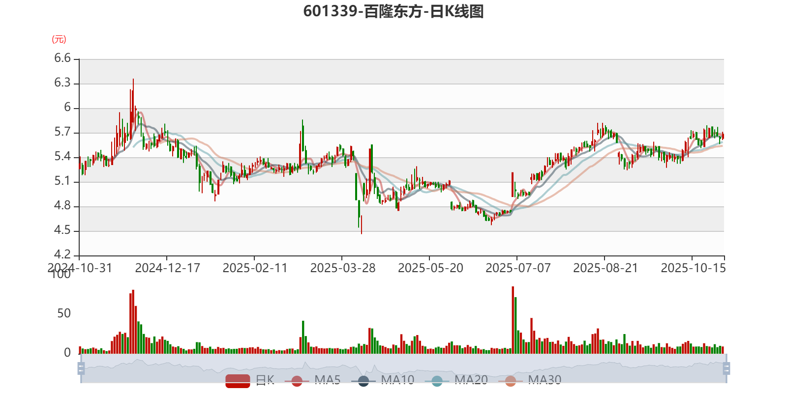 中证智能财讯百隆东方(601339)10月31日披露2025年第三季度报告。前三季度公司实现营业总收入57.24亿元,同比下降5.76%;归母净利润5.5亿元,同比增长33.23%;扣非净利润5.09亿元,同比增长99.55%;经营活动产生的现金流量净额为5.97亿元,同比下降52.01%;报告期内,百隆东方基本每股收益为0.37元,加权平均净资产收益率为5.79%。
