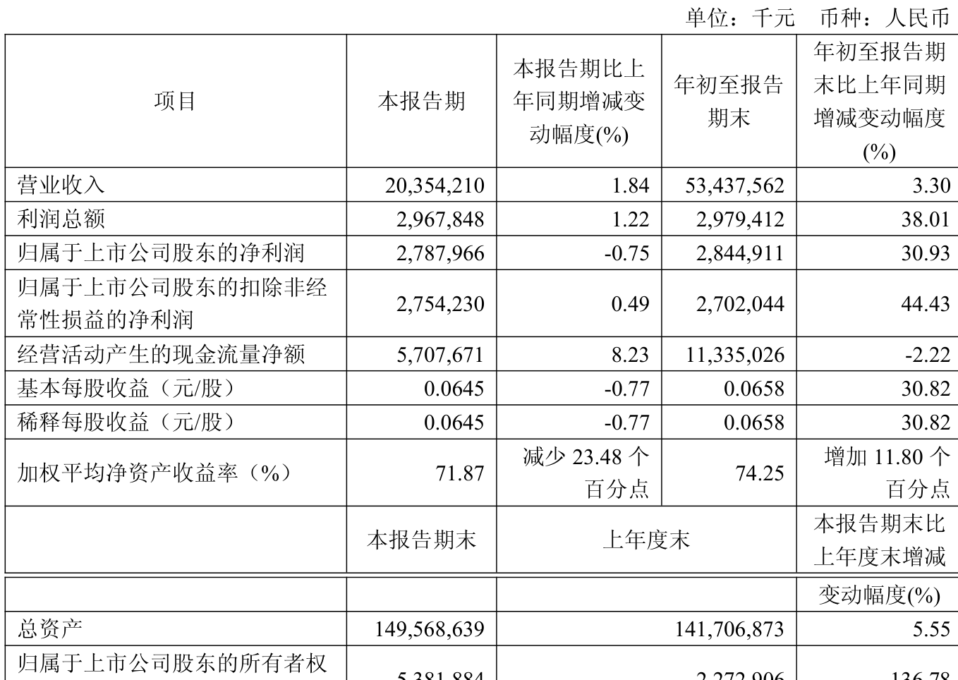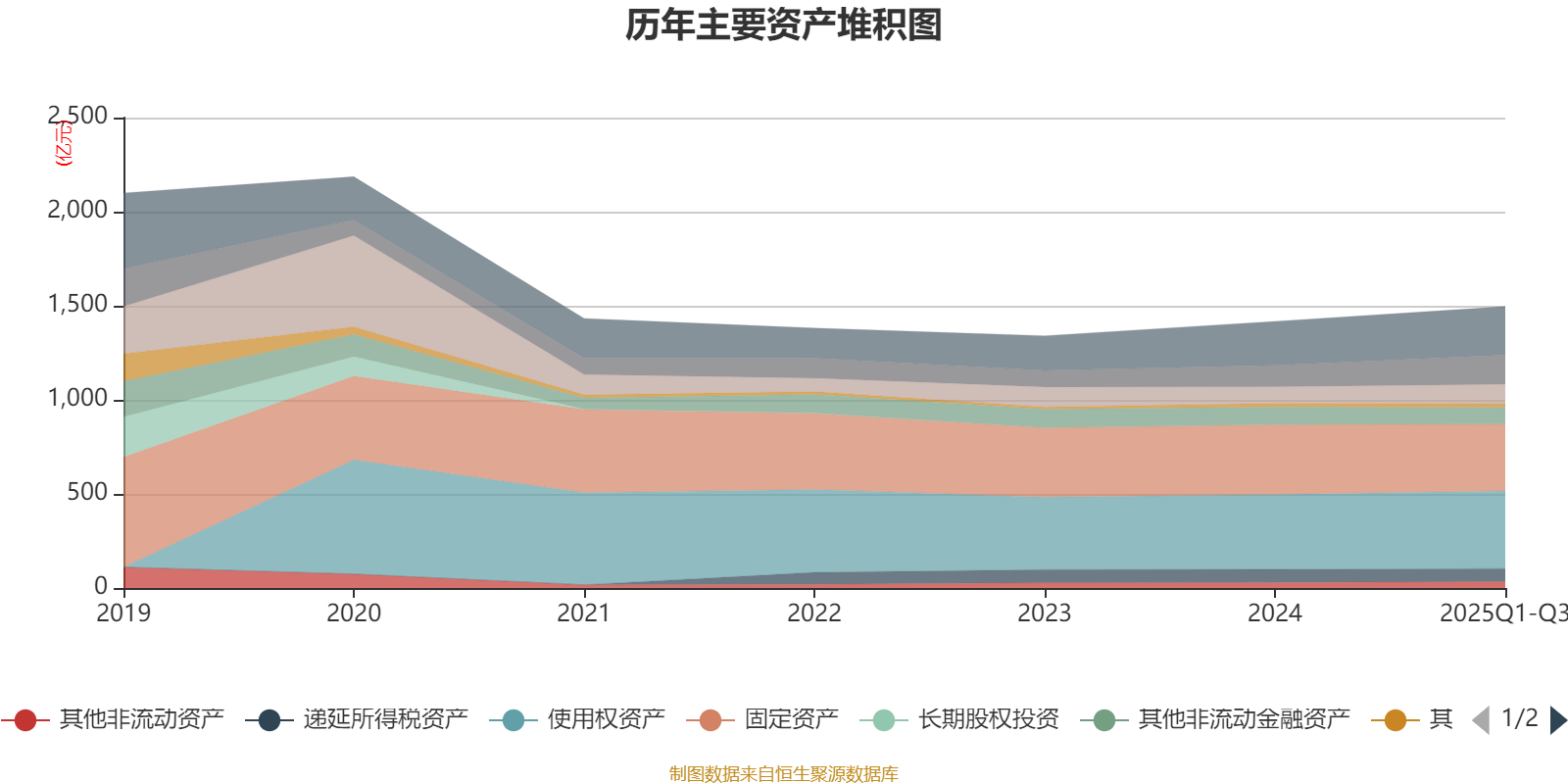 资产重大变化方面,截至2025年三季度末,公司固定资产较上年末减少4.39%,占公司总资产比重下降2.47个百分点;货币资金较上年末增加35.95%,占公司总资产比重上升2.34个百分点;在建工程合计较上年末增加30.64%,占公司总资产比重上升0.84个百分点;其他非流动金融资产较上年末减少6.57%,占公司总资产比重下降0.76个百分点。