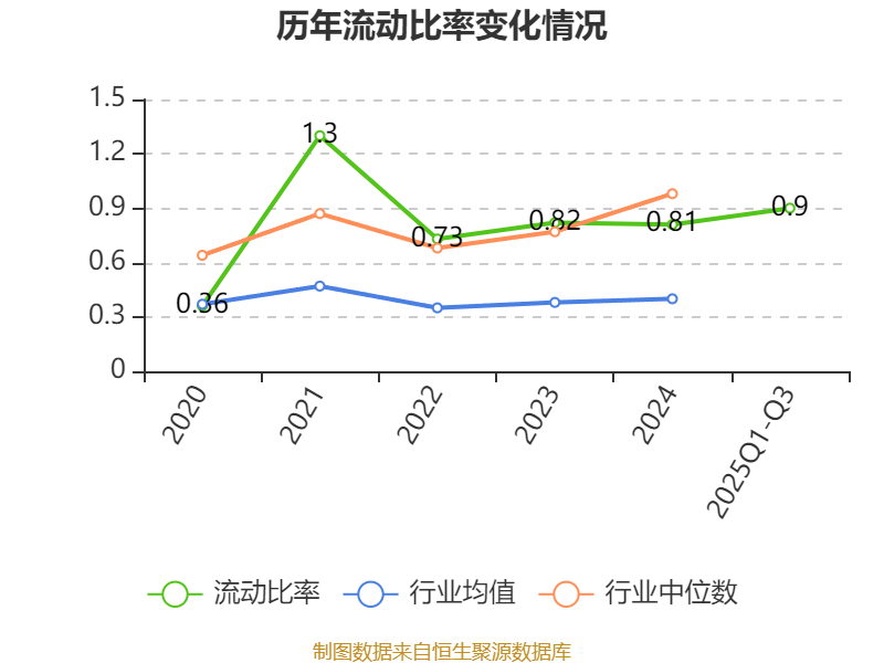 2025年前三季度,公司流动比率为0.9,速动比率为0.84。