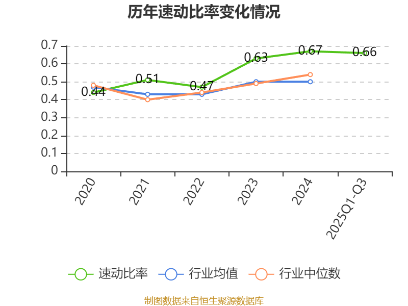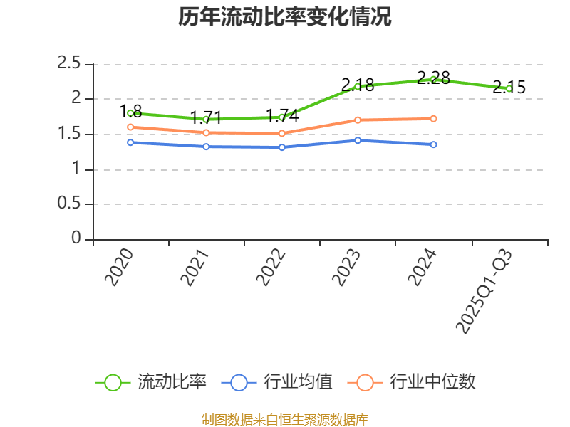 2025年前三季度,公司流动比率为2.15,速动比率为0.66。