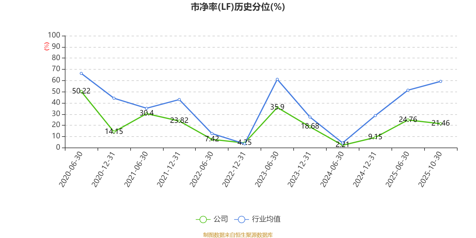 市盈率、市净率为负时,不显示当期分位数,会导致折线图中断。