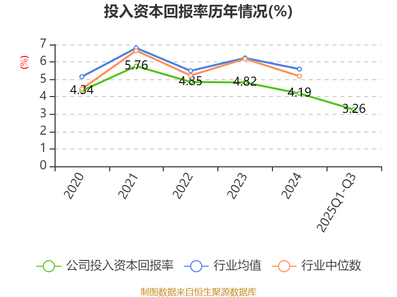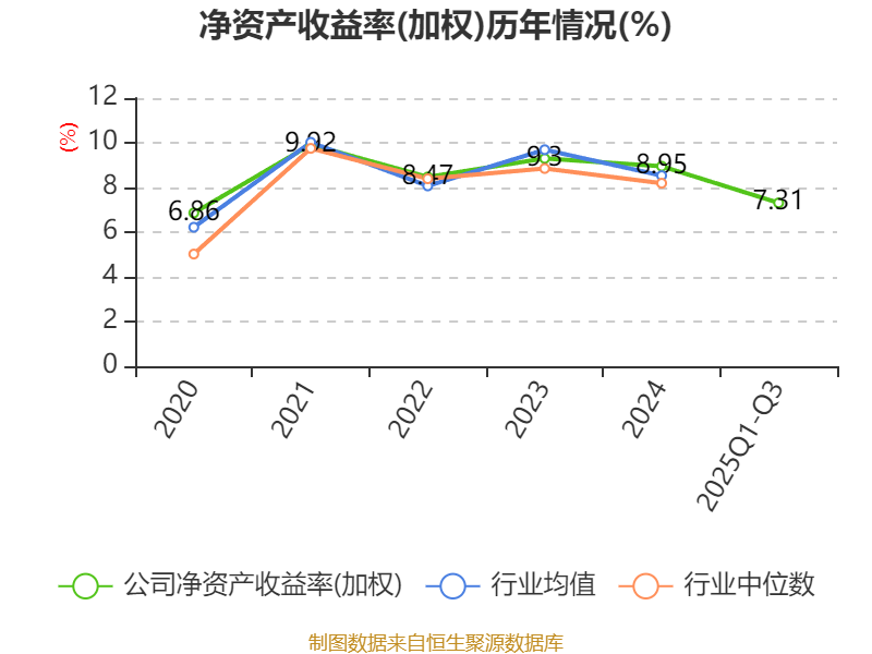 盈利能力方面, 2025年前三季度公司加权平均净资产收益率为7.31%,同比上升0.16个百分点。公司2025年前三季度投入资本回报率为3.26%,较上年同期下降0.09个百分点。