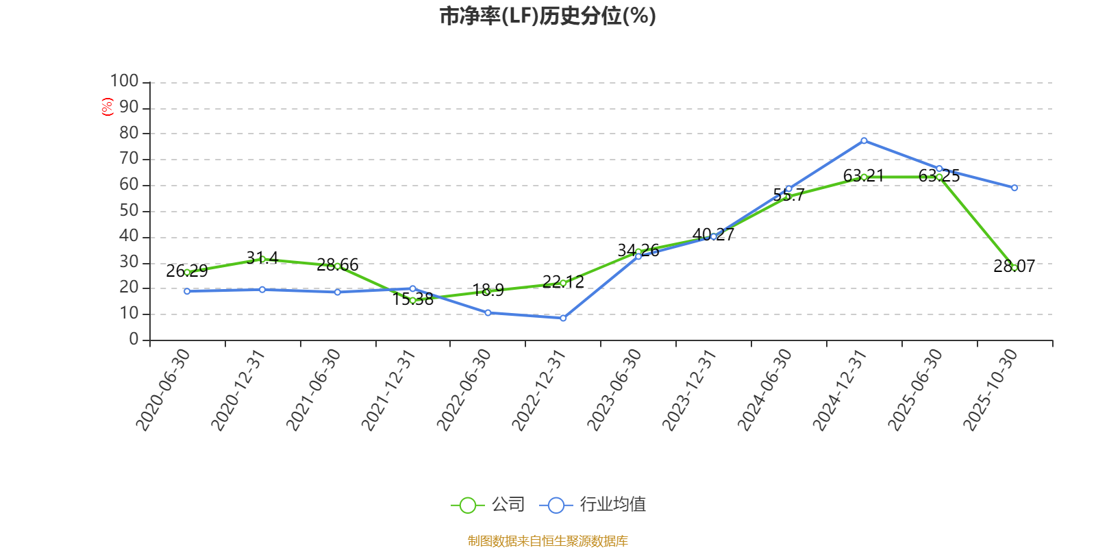 市盈率、市净率为负时,不显示当期分位数,会导致折线图中断。