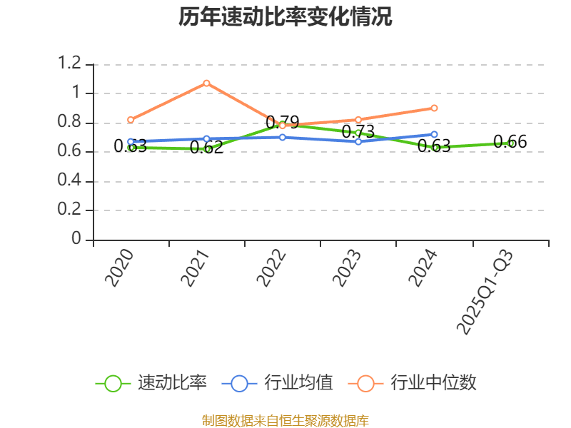 2025年前三季度,公司流动比率为0.69,速动比率为0.66。