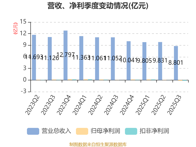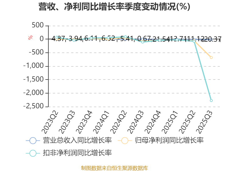 2025年前三季度,公司经营活动现金流净额为-1.29亿元,同比减少1.52亿元;筹资活动现金流净额3653.76万元,同比减少1983.92万元;投资活动现金流净额-1418.85万元,上年同期为-6758.26万元。