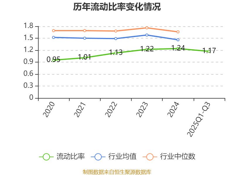 2025年前三季度,公司流动比率为1.17,速动比率为0.8。