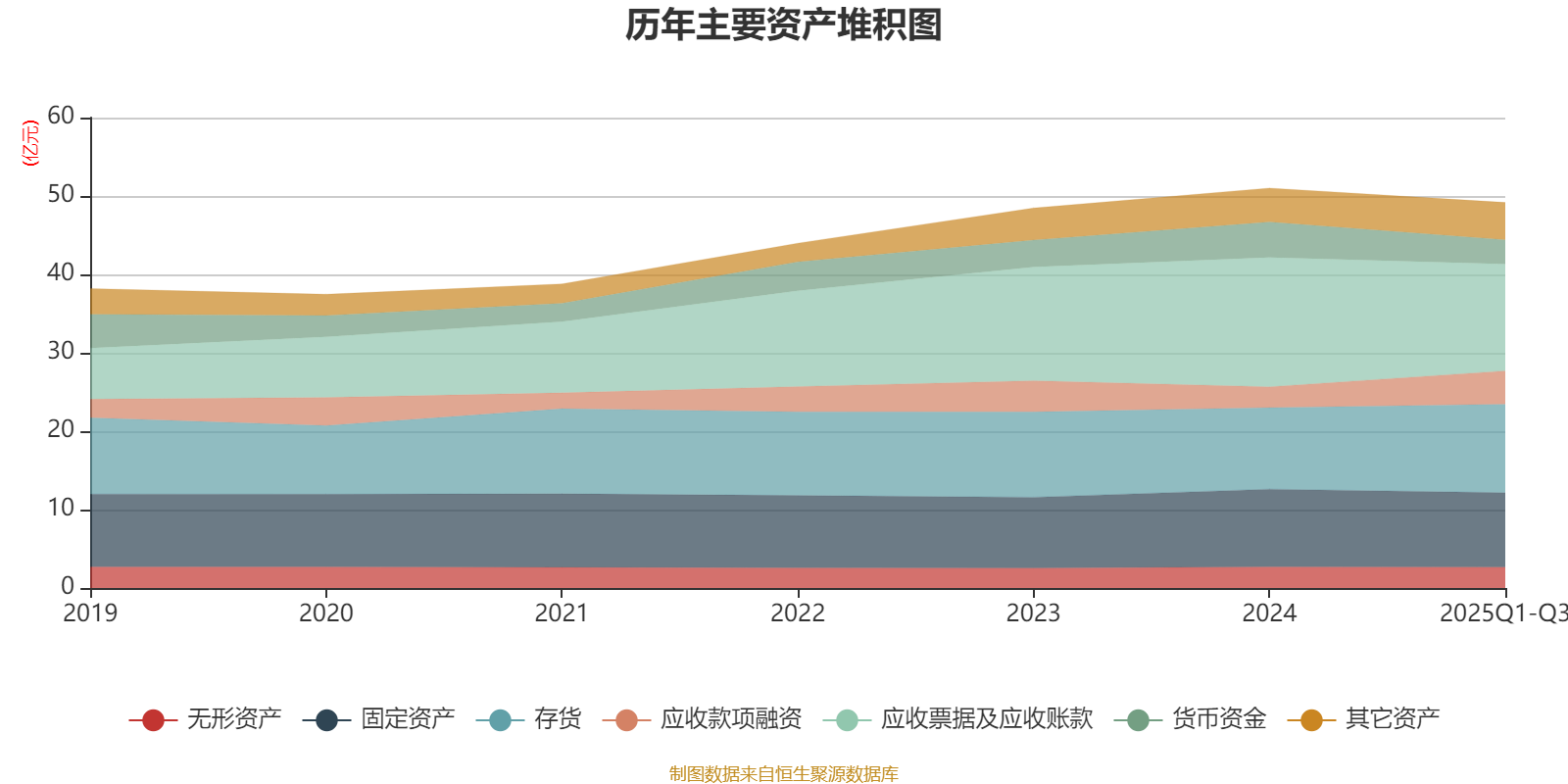 资产重大变化方面,截至2025年三季度末,公司应收票据及应收账款较上年末减少17.54%,占公司总资产比重下降4.68个百分点;应收款项融资较上年末增加60.73%,占公司总资产比重上升3.46个百分点;存货较上年末增加8.61%,占公司总资产比重上升2.58个百分点;货币资金较上年末减少31.32%,占公司总资产比重下降2.55个百分点。