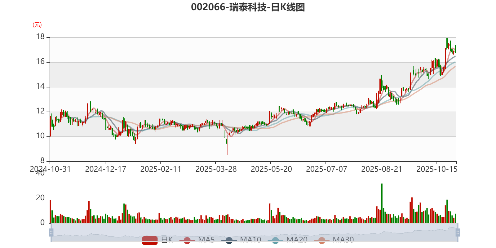 中证智能财讯瑞泰科技(002066)10月31日披露2025年第三季度报告。前三季度公司实现营业总收入28.44亿元,同比下降15.05%;归母净利润209.68万元,同比下降94.89%;扣非净利润亏损84.3万元,上年同期盈利3239.67万元;经营活动产生的现金流量净额为-1.29亿元,上年同期为2333.99万元;报告期内,瑞泰科技基本每股收益为0.0089元,加权平均净资产收益率为0.29%。