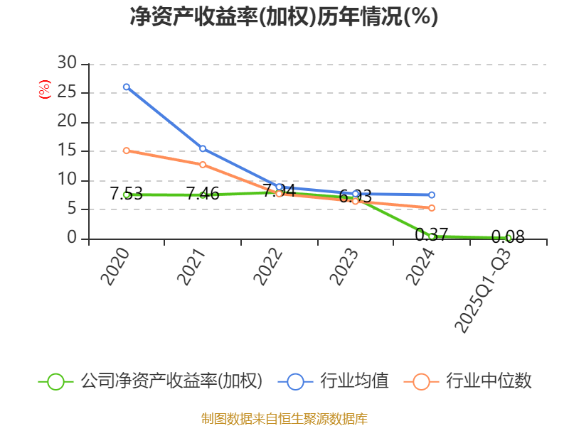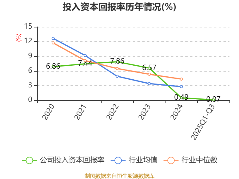 盈利能力方面, 2025年前三季度公司加权平均净资产收益率为0.08%,同比下降1.2个百分点。公司2025年前三季度投入资本回报率为0.07%,较上年同期下降1.08个百分点。