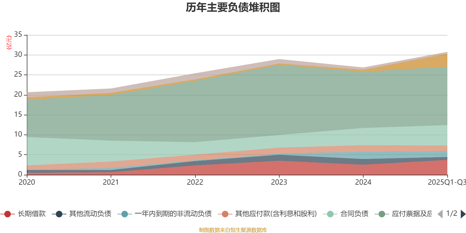 负债重大变化方面,截至2025年三季度末,公司短期借款较上年末增加573.72%,占公司总资产比重上升4.97个百分点;长期借款较上年末增加49.38%,占公司总资产比重上升1.89个百分点;其他流动负债较上年末减少49.44%,占公司总资产比重下降1.49个百分点;一年内到期的非流动负债较上年末减少20.34%,占公司总资产比重下降0.93个百分点。