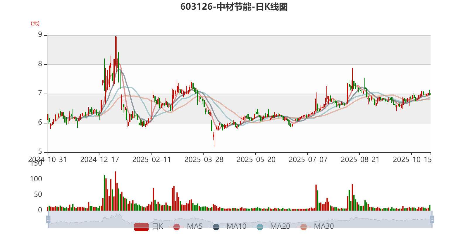 以10月30日收盘价计算,中材节能目前市盈率(TTM)约为-239.56倍,市净率(LF)约2.08倍,市销率(TTM)约1.47倍。