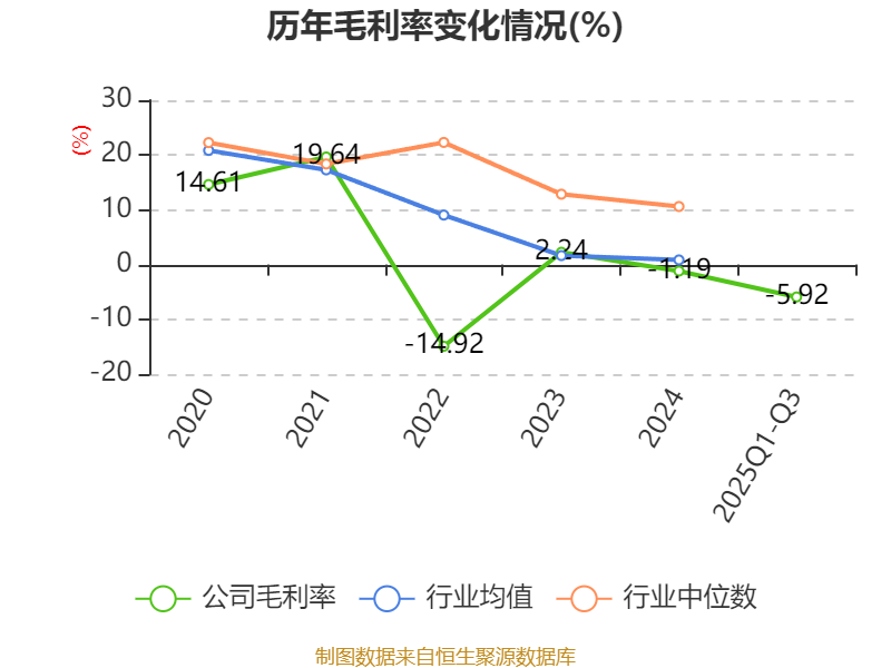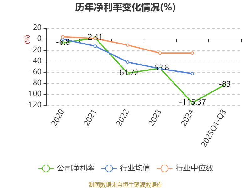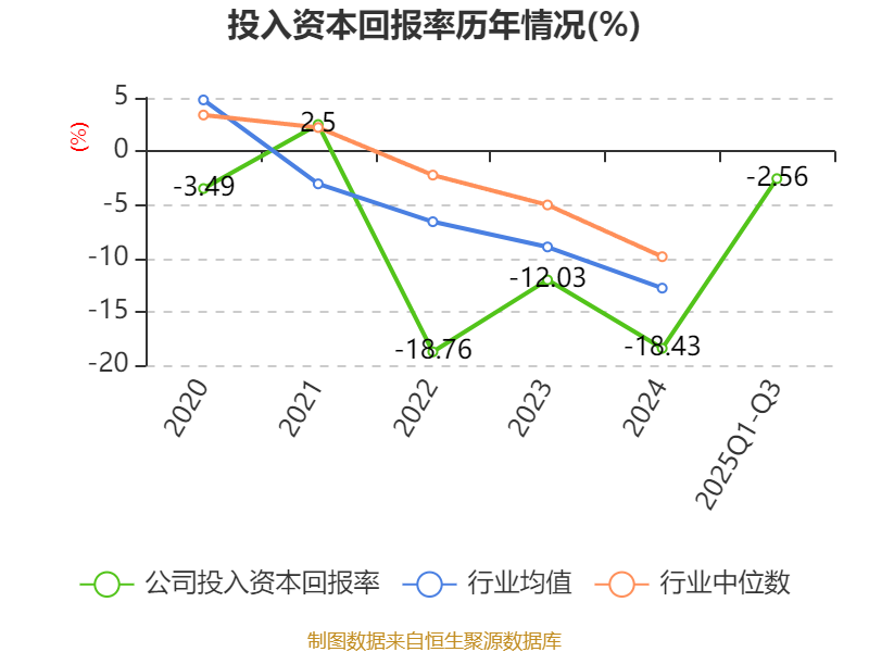 盈利能力方面, 2025年前三季度公司加权平均净资产收益率为-21.45%,同比下降8.31个百分点。公司2025年前三季度投入资本回报率为-2.56%,较上年同期下降0.87个百分点。