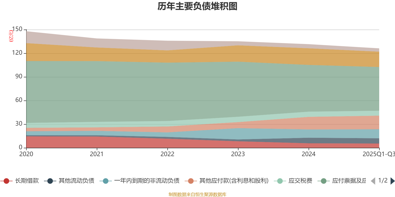 负债重大变化方面,截至2025年三季度末,公司其他应付款(含利息和股利)较上年末增加7.91%,占公司总资产比重上升1.53个百分点;一年内到期的非流动负债较上年末增加9.53%,占公司总资产比重上升1.13个百分点;应付票据及应付账款较上年末减少6.41%,占公司总资产比重下降0.55个百分点;短期借款较上年末减少7.77%,占公司总资产比重下降0.4个百分点。