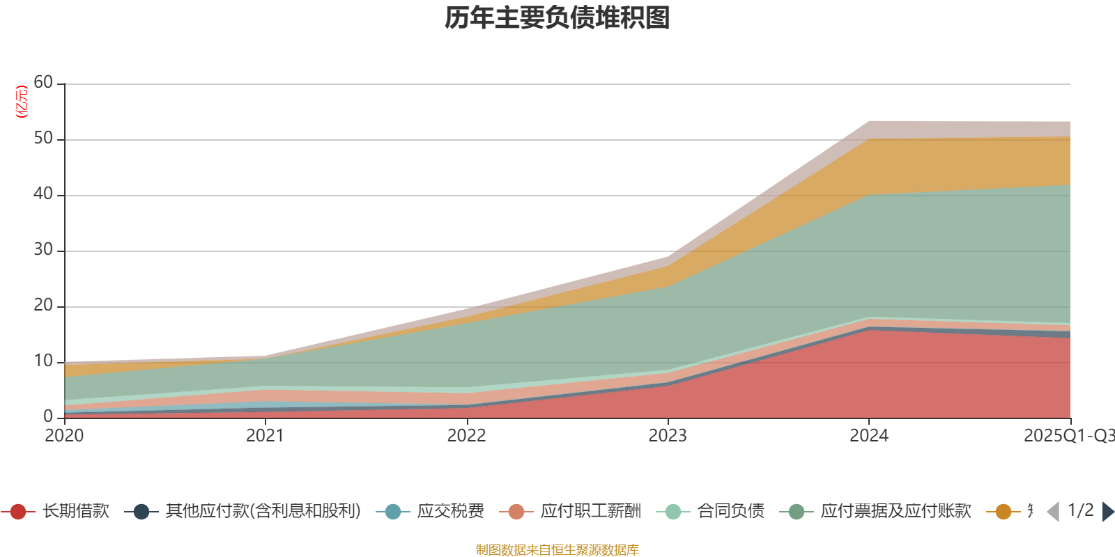 负债重大变化方面,截至2025年三季度末,公司长期借款较上年末减少9.04%,占公司总资产比重下降2.69个百分点;短期借款较上年末减少13.87%,占公司总资产比重下降2.19个百分点;一年内到期的非流动负债较上年末减少29.07%,占公司总资产比重下降0.94个百分点;应付票据及应付账款较上年末增加13.38%,占公司总资产比重上升0.92个百分点。