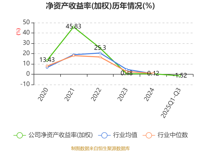 盈利能力方面, 2025年前三季度公司加权平均净资产收益率为-1.52%,同比下降1.81个百分点。公司2025年前三季度投入资本回报率为-1.27%,较上年同期下降0.39个百分点。