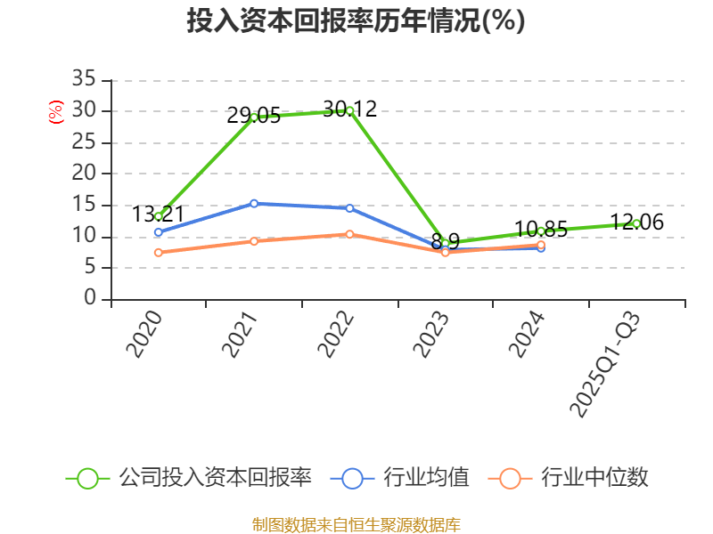 盈利能力方面, 2025年前三季度公司加权平均净资产收益率为13.18%,同比上升4.44个百分点。公司2025年前三季度投入资本回报率为12.06%,较上年同期上升4.24个百分点。