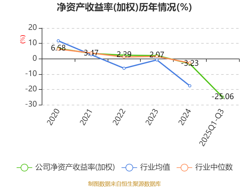 盈利能力方面, 2025年前三季度公司加权平均净资产收益率为-25.06%,同比下降24.71个百分点。公司2025年前三季度投入资本回报率为-7.97%,较上年同期上升6.93个百分点。