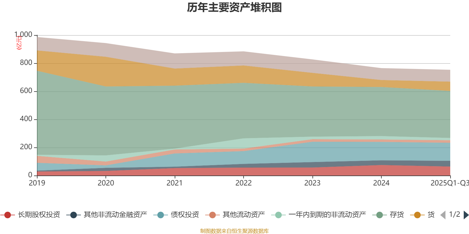 资产重大变化方面,截至2025年三季度末,公司货币资金较上年末增加33.48%,占公司总资产比重上升2.31个百分点;存货较上年末减少4.25%,占公司总资产比重下降1.25个百分点;长期股权投资较上年末减少14.26%,占公司总资产比重下降1.25个百分点;一年内到期的非流动资产较上年末减少33.45%,占公司总资产比重下降1.02个百分点。