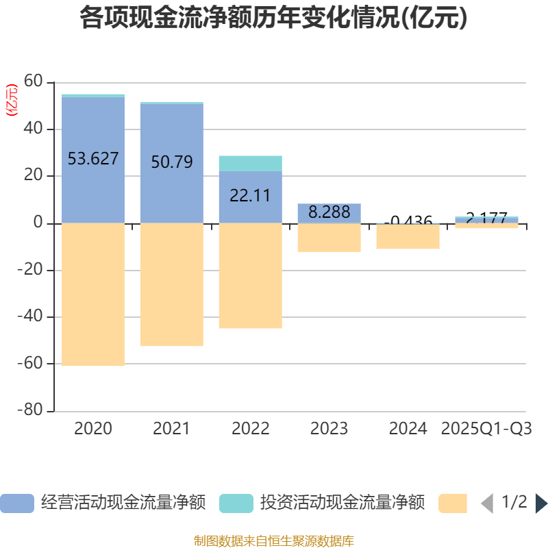 2025年前三季度,公司经营活动现金流净额为2.18亿元,同比增加5.38亿元;筹资活动现金流净额-2.17亿元,同比增加3.14亿元;投资活动现金流净额6255.86万元,上年同期为-2183.05万元。