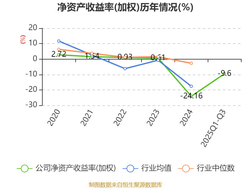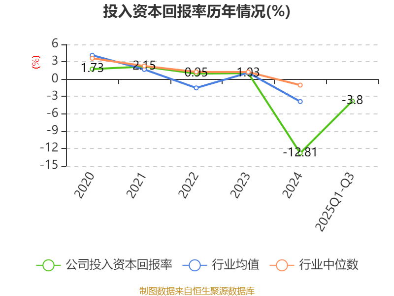 盈利能力方面, 2025年前三季度公司加权平均净资产收益率为-9.6%,同比下降9.74个百分点。公司2025年前三季度投入资本回报率为-3.8%,较上年同期下降4.1个百分点。