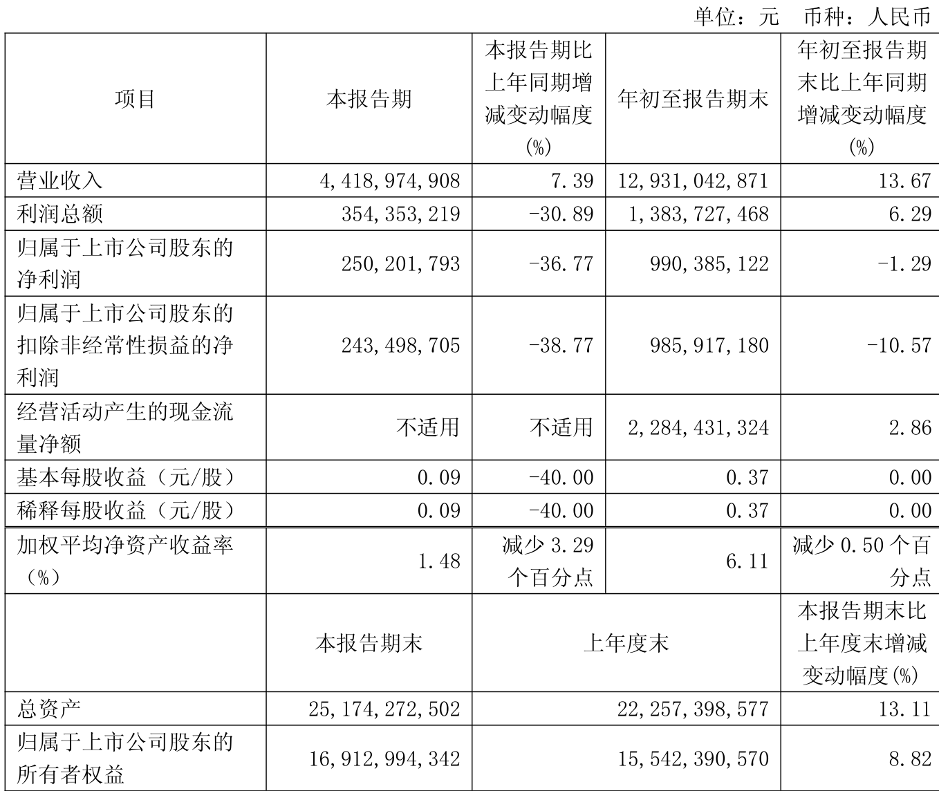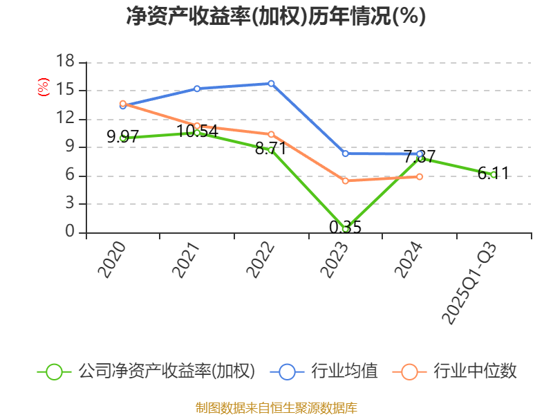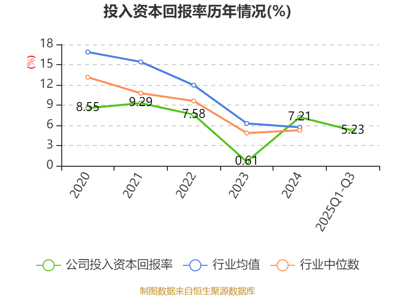 盈利能力方面, 2025年前三季度公司加权平均净资产收益率为6.11%,同比下降0.5个百分点。公司2025年前三季度投入资本回报率为5.23%,较上年同期下降0.62个百分点。